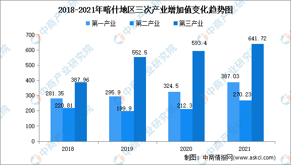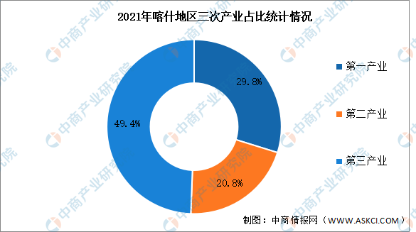 初步核算,2021年,喀什地区完成地区生产总值1298.98亿元,比上年增长7.6%。其中,其中,第一产业增加值387.03亿元,增长7.7%;第二产业增加值270.23亿元,增长11.0%;第三产业增加值641.72亿元,增长6.2%。三次产业结构比为29.8:20.8:49.4。