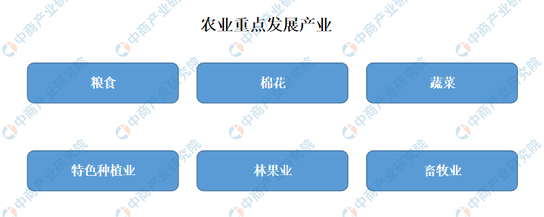 “十四五”期间,喀什地区坚持“稳粮、优棉、增菜、促经、兴果、强牧”发展思路,大力发展粮食、棉花、蔬菜、特色种植业、林果业、畜牧业六大产业。优化农产品加工业布局,引导加工产能向林果、棉花、畜禽、粮油等农产品主产区、优势区和物流节点集聚。