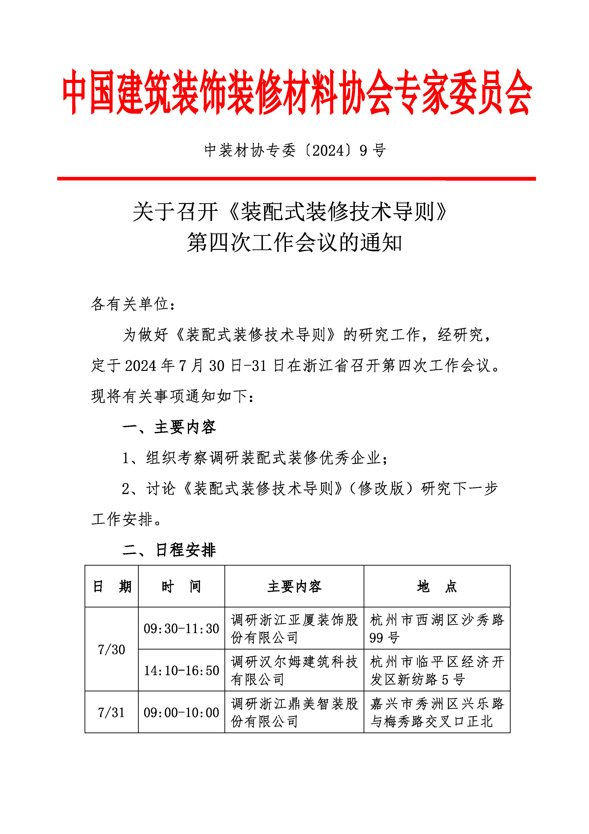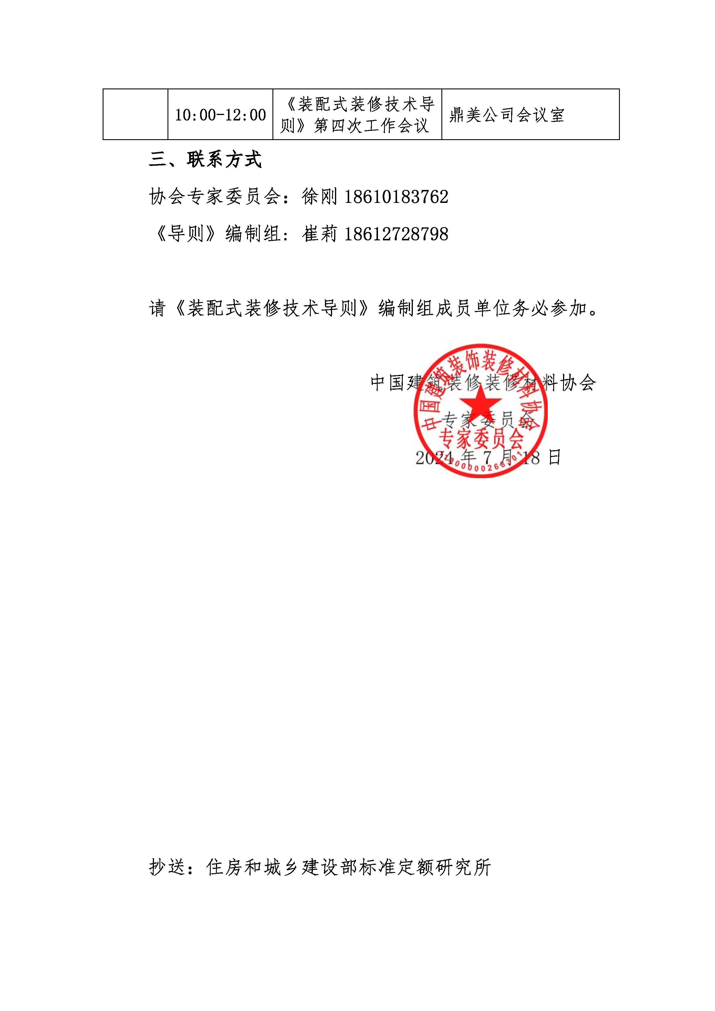 关于召开《装配式装修技术导则》 第四次工作会议的通知