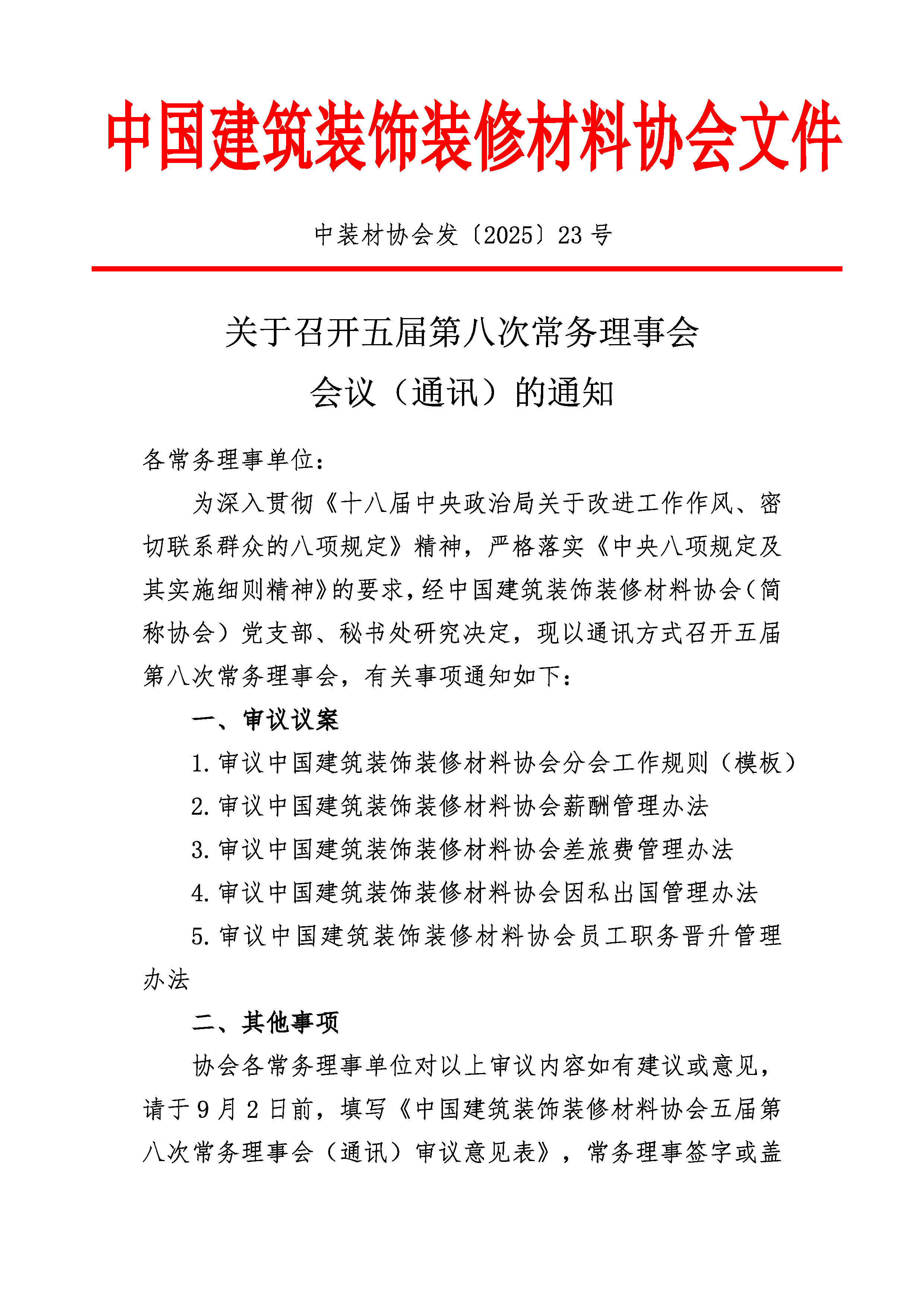 关于召开五届第八次常务理事会会议(通讯)的通知
