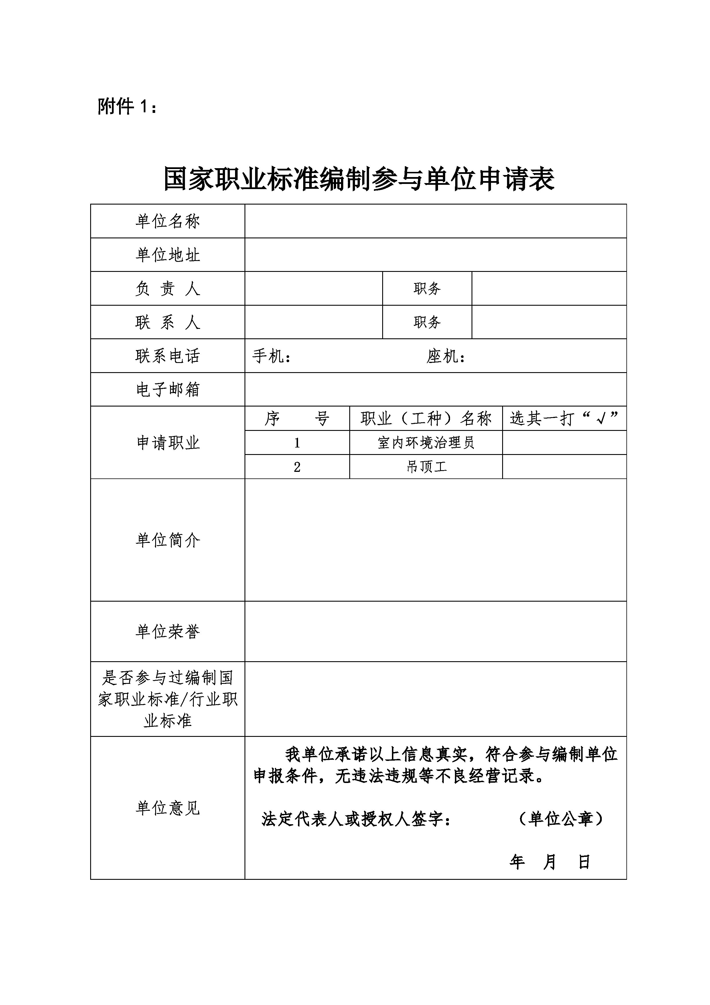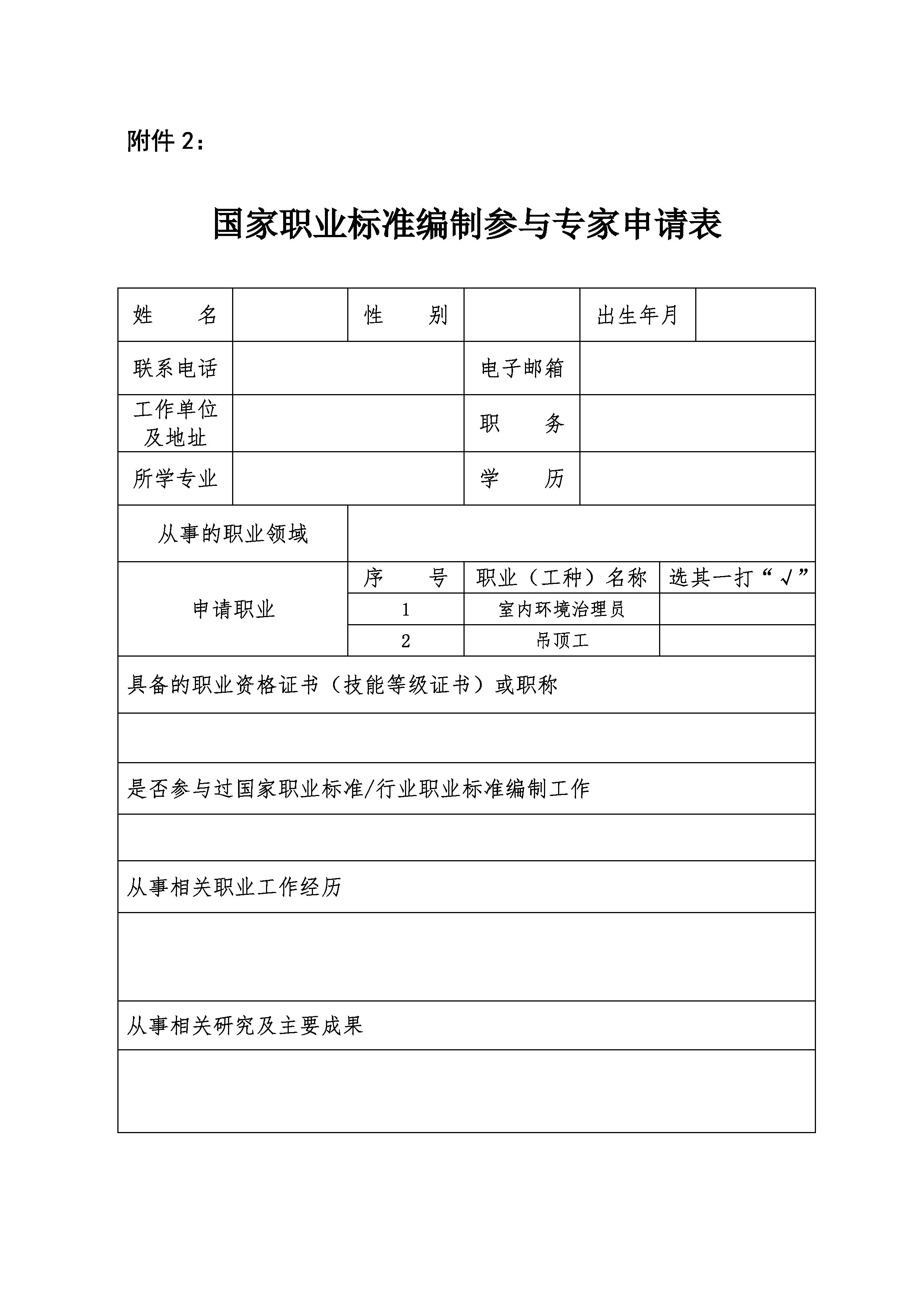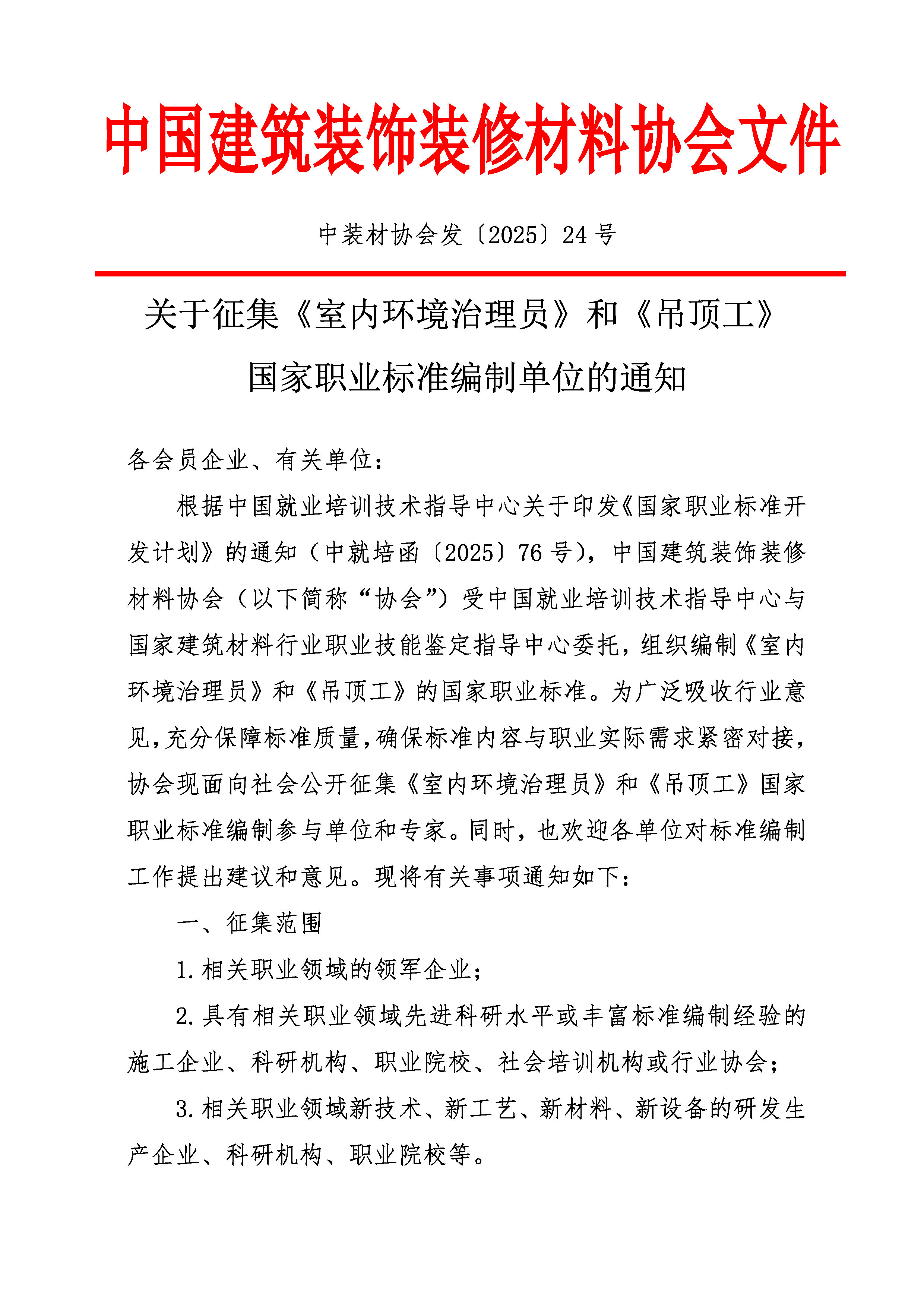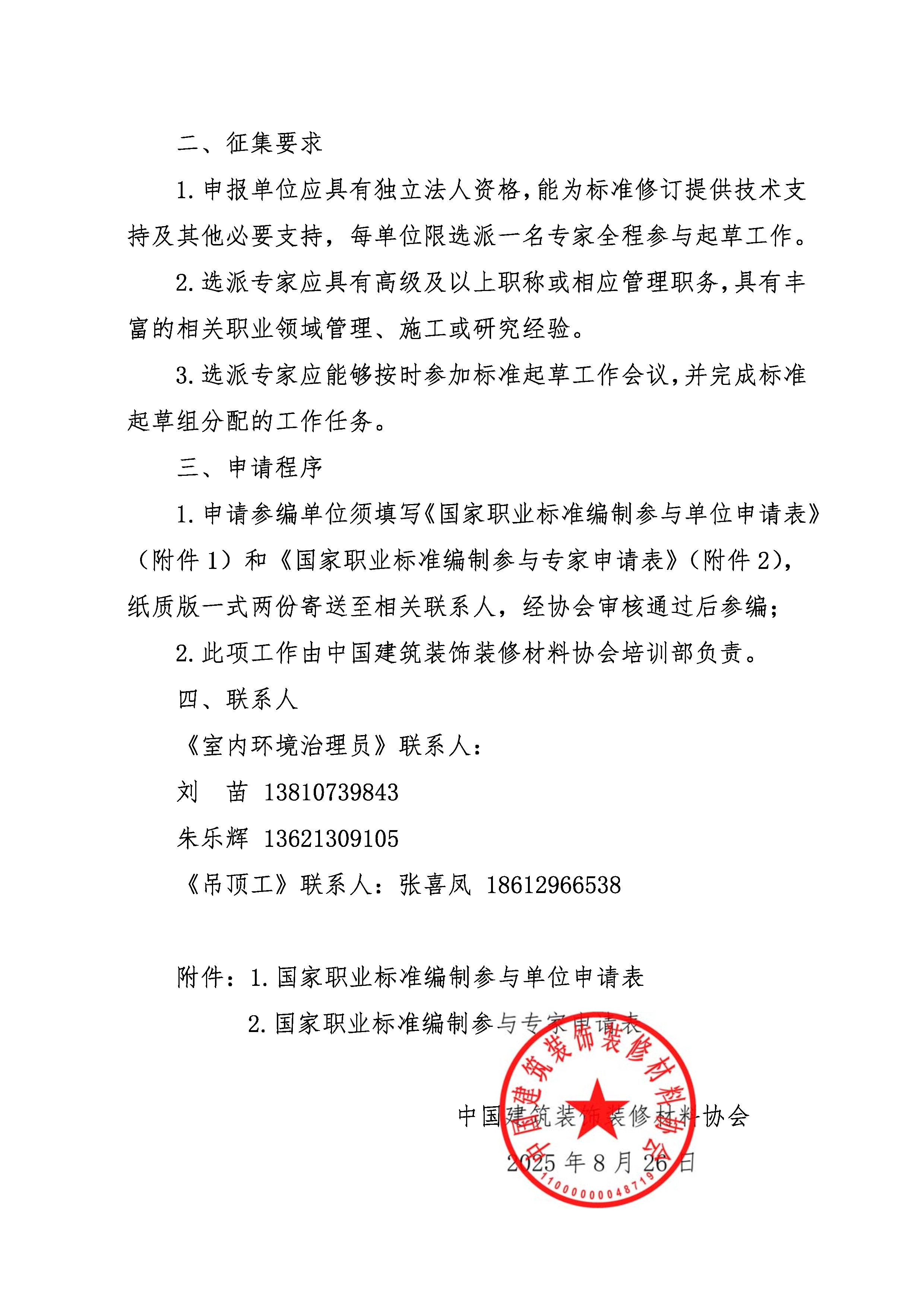 关于征集《室内环境治理员》和《吊顶工》国家职业标准编制单位的通知
